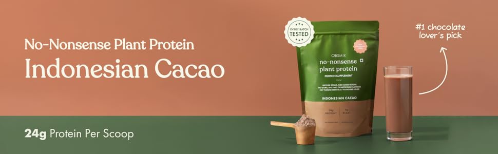 Cosmix No-Nonsense Plant Protein | 24 Protein/Serve | Indonesian Cacao (Chocolate) | Plant Based Protein, Pea & Rice Isolate | Clean, Easy to Digest | All Essential Amino Acids