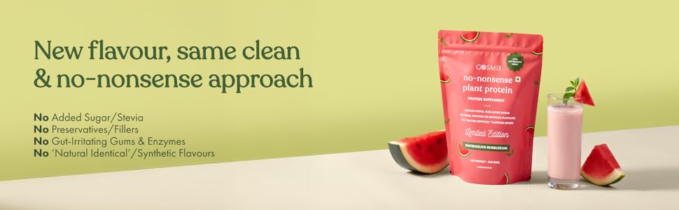 Cosmix No-Nonsense Plant Protein | 23 Protein/Serve | Watermelon Bubblegum | Plant Based Protein, Pea & Rice Isolate | Clean, Easy to Digest | All Essential Amino Acids